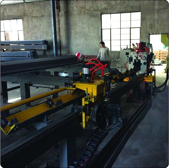 本生產(chǎn)線適用于電力、通訊、金具、立體車庫(kù)、電梯制造、空調(diào)制造等領(lǐng)域規(guī)格較小的角鋼型材的雙肢邊同時(shí)沖孔和自動(dòng)定長(zhǎng)切斷作業(yè),可通過(guò)更換模具來(lái)實(shí)現(xiàn)鉚釘孔、長(zhǎng)圓孔、異型孔的一次性制孔成型。